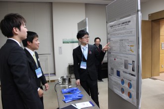 今回のシンポジウムには,全国のCMT、CST養成拠点構築事業関係者101名の出席があり,本学 理事(企画戦略担当)松木 副学長の挨拶で始まりました。その後,理科教育実践活動,CST活動の報告など,実際に活用した教材などを示しながらのポスター・ワークショップ発表が行われました。また,閉会のあいさつは本学 教育学部 大山 利夫 副学部長により行われました。
