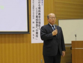 評価委員会に引き続き、評価委員のひとりである 東京都北区立滝野川小学校長 林 四郎 先生による講演会が開催されました。 「小学校における理科教育の現状とCST養成事業への期待」という演題でご講演いただき 公演後のディスカッションでは活発な意見交換がなされました。 多数の皆様のご参集、誠にありがとうございました。