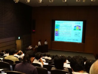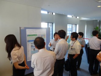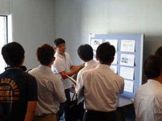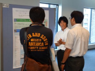 大野氏のポスター発表の様子 (ずっと盛況でした) 平中氏(実施担当)と笹山氏(受講者・院生)の口頭発表